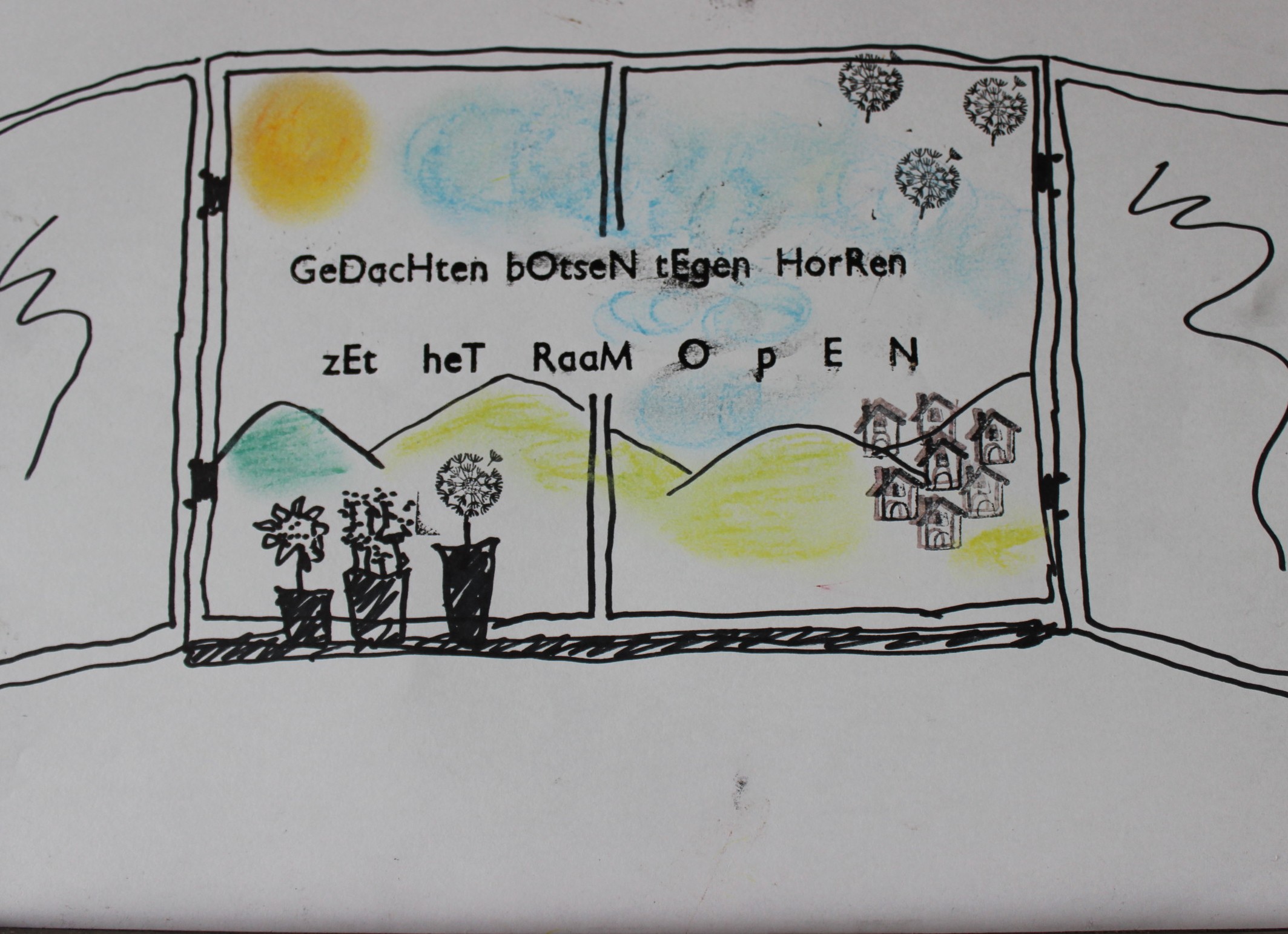 Vandaag een mini-cursusje ‘visuele poëzie’ gevolgd van Wisper in Leuven, begeleid door creatieve fee Sandrine Lambert. Een beetje nieuwe wereld voor mij. Hieronder twee ideeën. Ik zou zeggen: ‘Do try this at home’, ter opfrissing van je bezwete zomerhoofd.