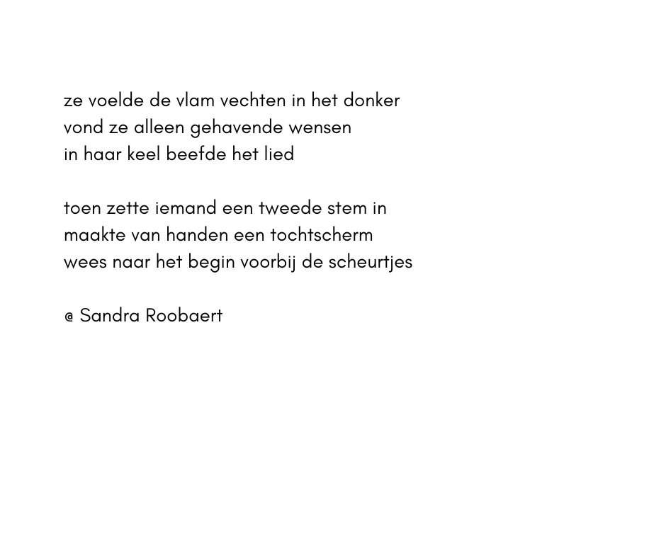 Dit jaar heb ik extra het gevoel dat het – tegen een achtergrond van oorlog en verwoesting, giftig leiderschap en nog veel meer ellendigs – onmogelijk voor me is om wat luchtige eindejaarssfeer de ether in te blazen. Ik voel het niet, en kan het dan ook niet faken. De vlam flakkert. Goed, laten we het dan gewoon daarover hebben. Terwijl ik schrijf, ontdek ik dat ik wel een weg zie. Dat die weg ‘iemand’ is. We kunnen het alleen maar samen. Ik denk aan de concrete ‘iemanden’ in mijn leven. En wens iedereen op alle momenten waarop het nodig is iemand die voorbijkomt en de dingen anders maakt. Ook: dat je zelf voor anderen iemand kan zijn.
