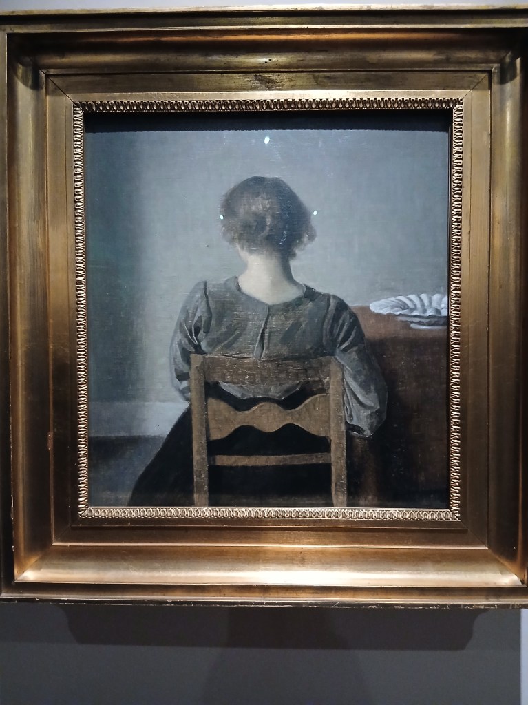 Het volgende uur geniet ik in de eerder kleine ruimtes met gedempt licht van de melancholische, ingetogen schilderijen van Hammershoi en anderen. Ik wist niet dat hij inspiratie haalde bij enkele Belgen (Le Brun, Khnopff, Degouve de Nuncques), en dat hij op zijn beurt weer een aantal Italianen inspireerde. Ik kom opgefrist en blij om mijn impulsieve zijsprongetje weer buiten. En een half miljoen foto’s rijker.