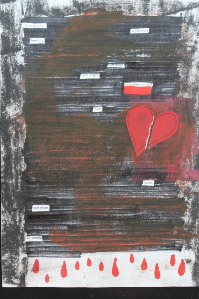 Ik zit er tot de ellebogen in, rood en knarsend.