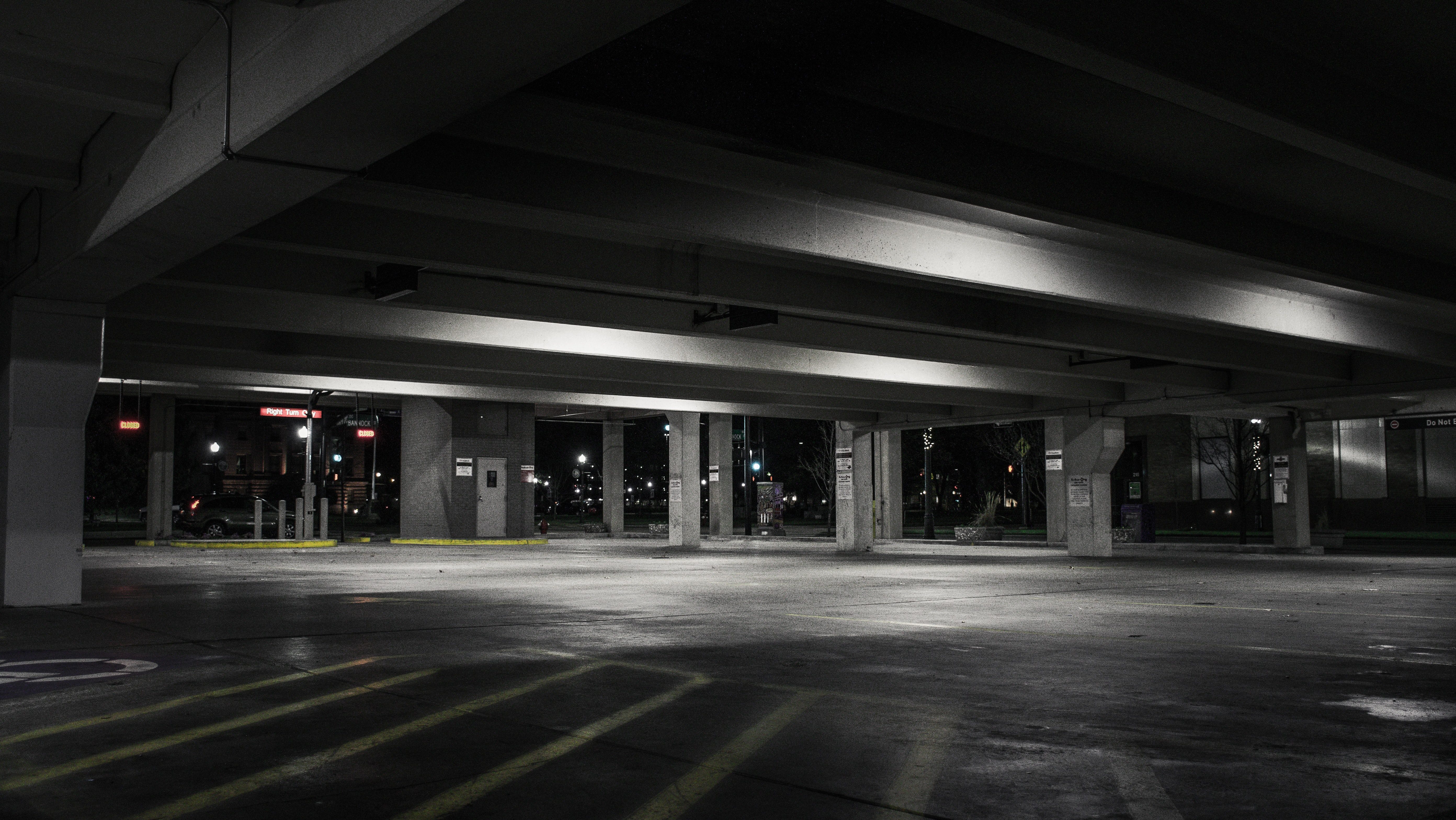 De rode nachtlichten zijn vlakke manen, dof van het bloed.